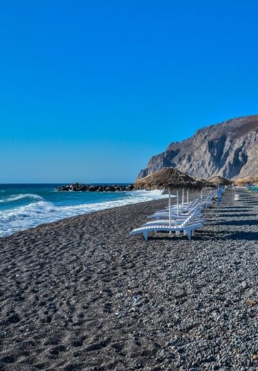Perissa offers wide appeal, attracting backpackers, families, and couples. It’s a lively beach with plenty of eateries, amenities, and lounges to enjoy music and cocktails by the sea but perhaps not quite as rowdy as Perivolos.