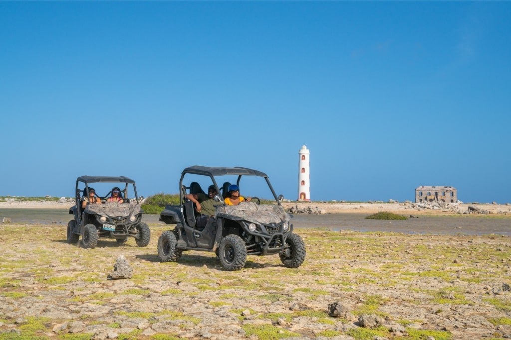 Island life doesn’t have to be all about relaxing on the beach or gently floating in crystal-clear water. If you want to up the adventure factor, consider driving an ATV through Washikemba Reservoir. Drive through the reservoir, spotting wild donkeys and massive iguanas, and along some of the most picturesque coastal roads on the island.